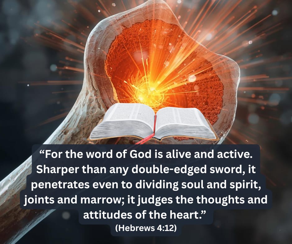 So when we are told in Hebrews that God’s Word is able to penetrate even the bone marrow, we start to understand how vital His Word is for our survival at all levels, including physical. We’re also reminded in Proverbs that nourishment for our bones (including marrow) comes from seeking God’s wisdom with reverent fear and avoiding evil: