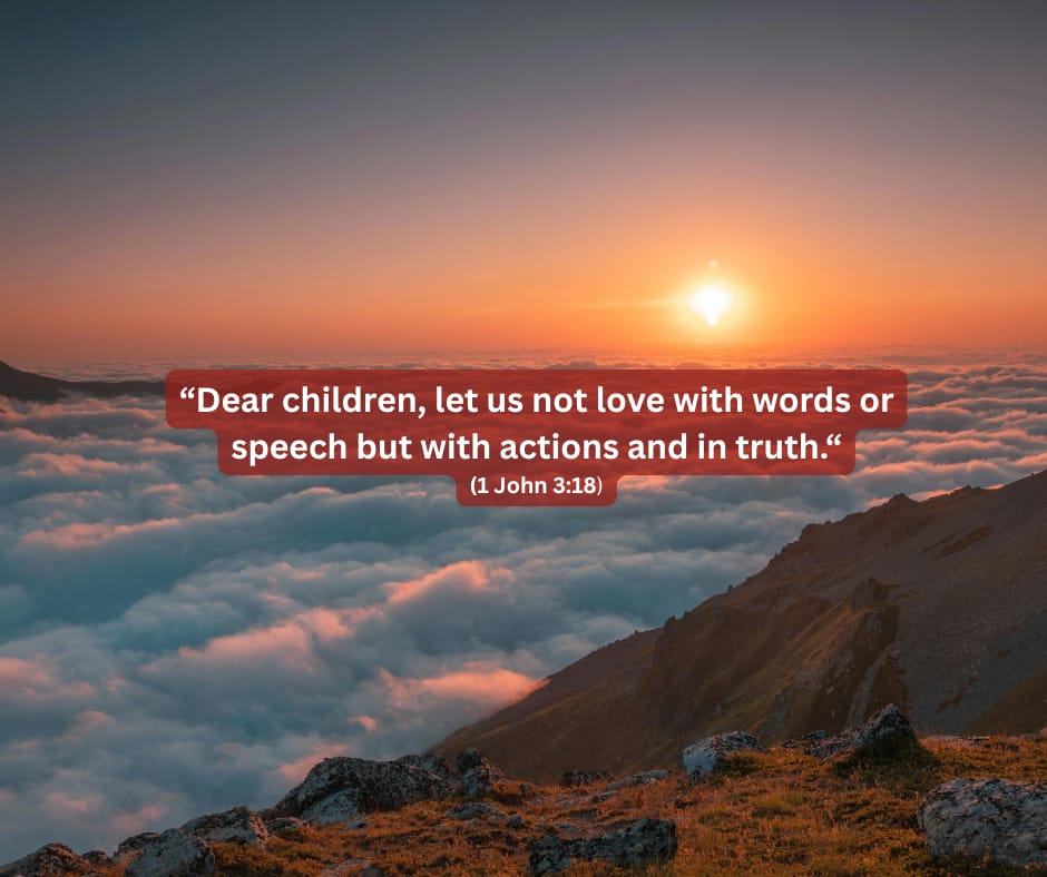 We've heard the expression many times that ‘actions speak louder than words’. This saying is truly supported by 1 John 3:18. Think about the fact that when you read the Gospel of John, which John the Apostle also wrote, he refers to himself often as ‘the disciple Jesus loved’. Yet nowhere in scripture do we read Jesus saying ‘John, I love you’. I believe it wasn’t necessary because Jesus demonstrated His love to John with His actions and in truth.