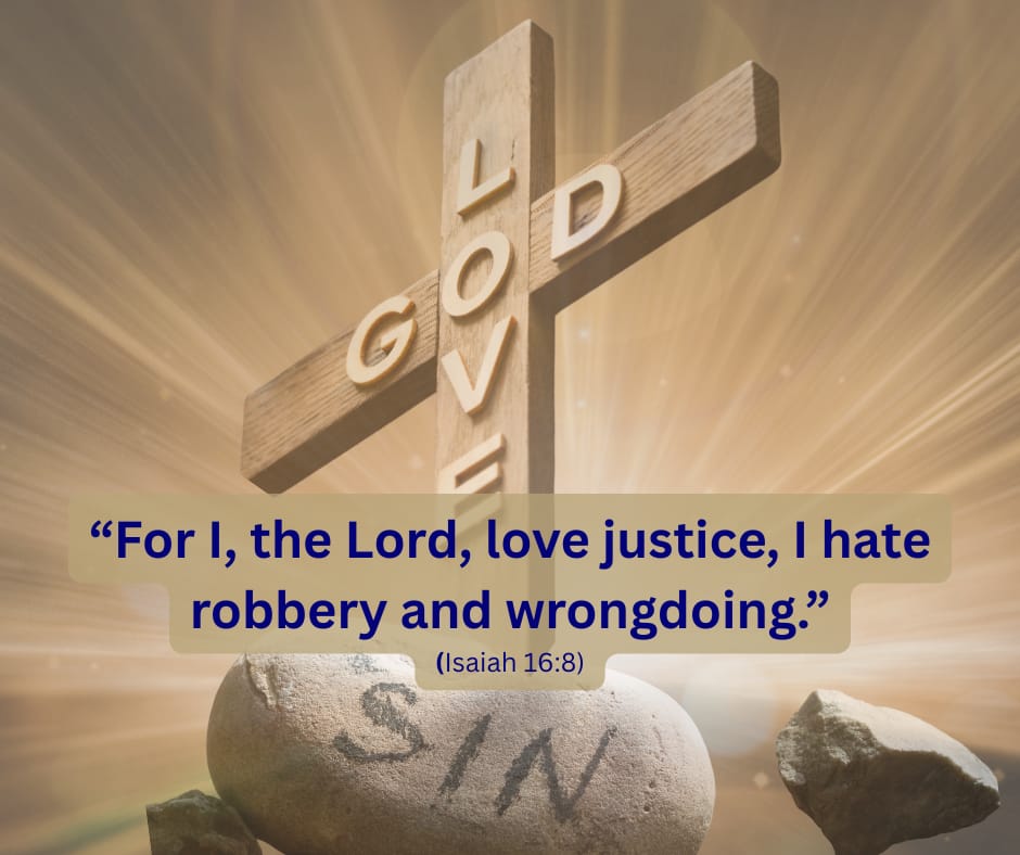 Isaiah 61:8, says: “For I, the Lord, love justice, I hate robbery and wrongdoing.”